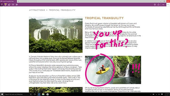 Microsoft Edge lets you move quickly from browsing to doing. Write1 or type notes directly on web pages and share them with others, read online articles free of distraction, and save your favourite reads for convenient access later. And with Cortana enabled, you can highlight an unfamiliar term to get a contextual explanation that doesn’t take you away from where you are.