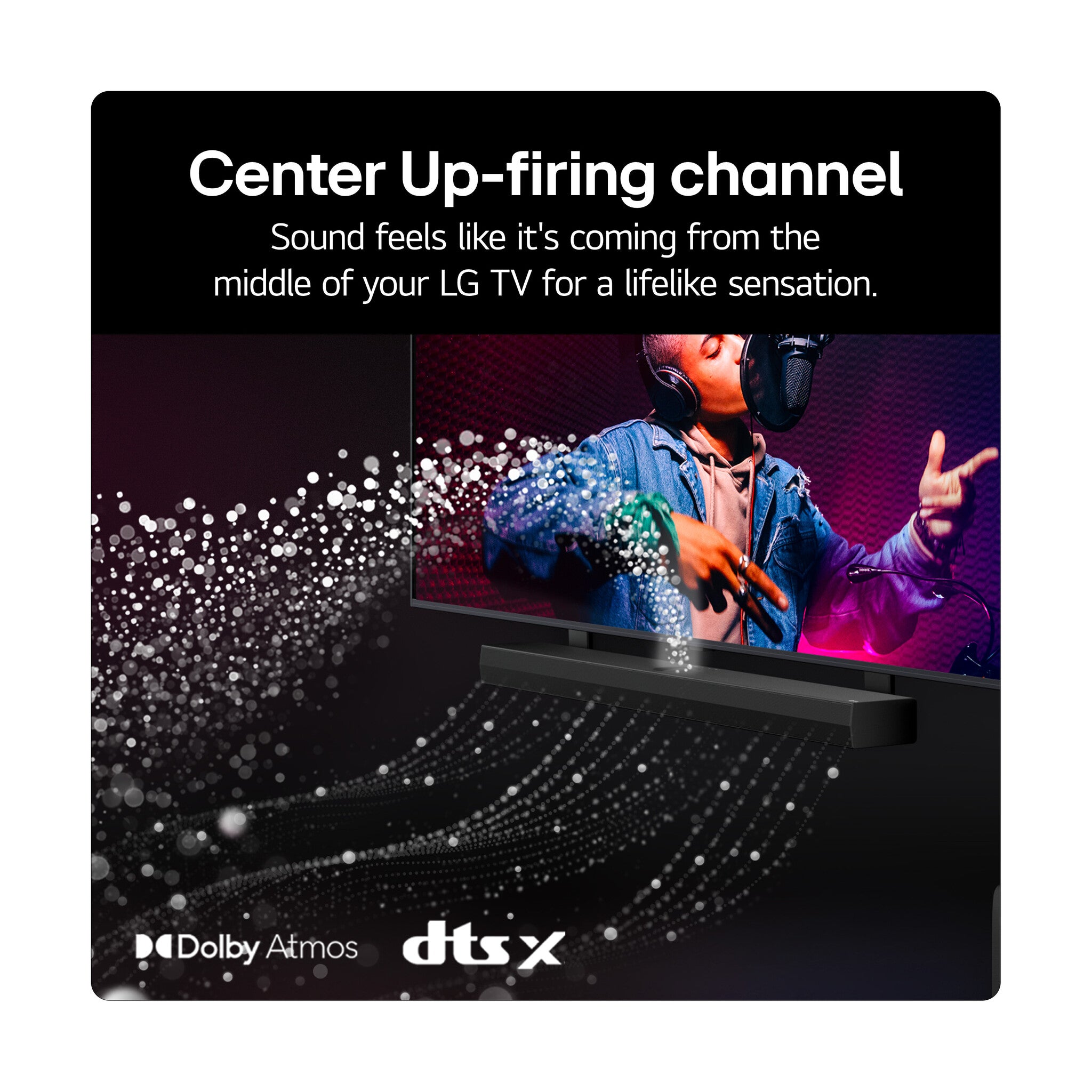 The Center Up-firing Channel makes sound feel like it's coming from the middle of your LG TV for a lifelike sensation.