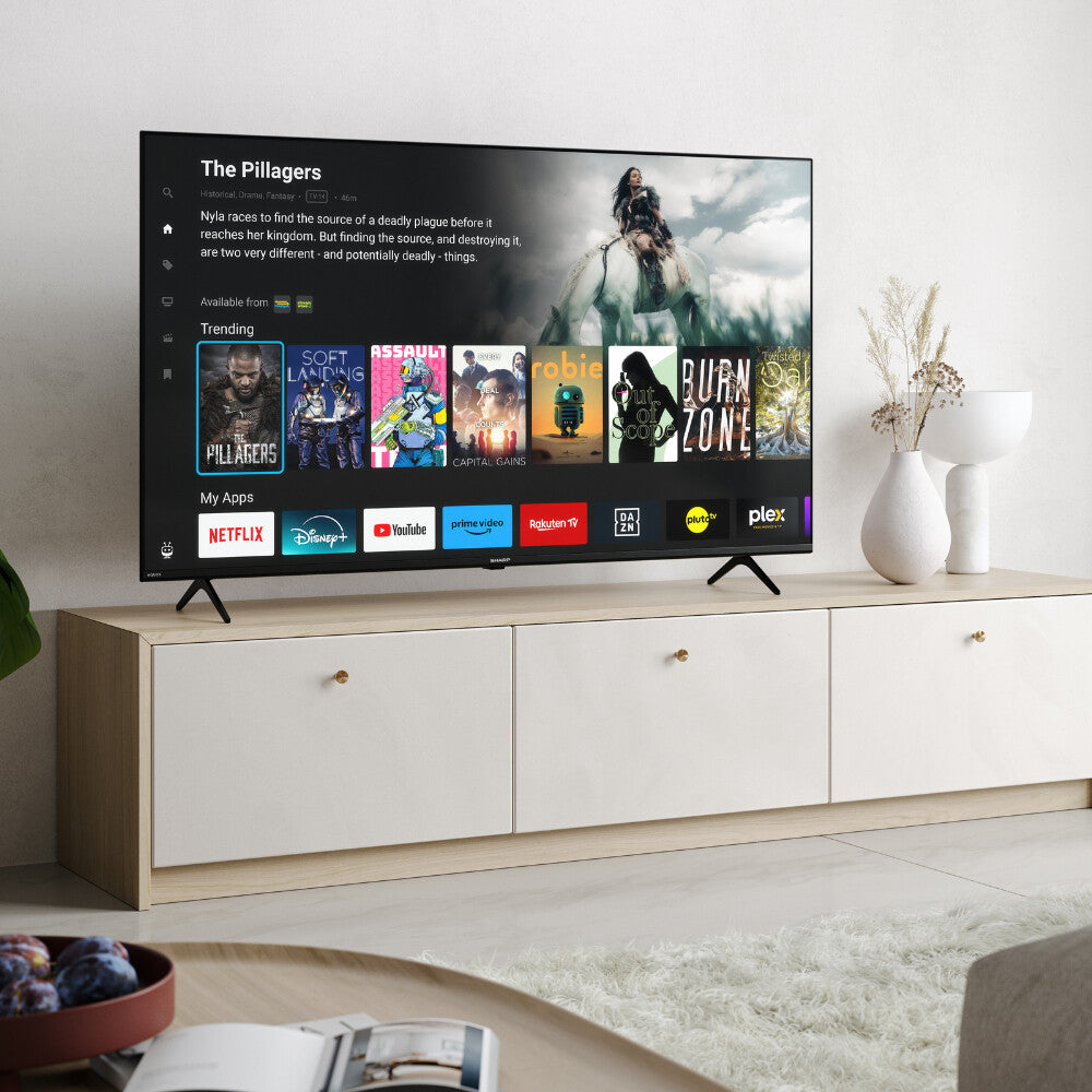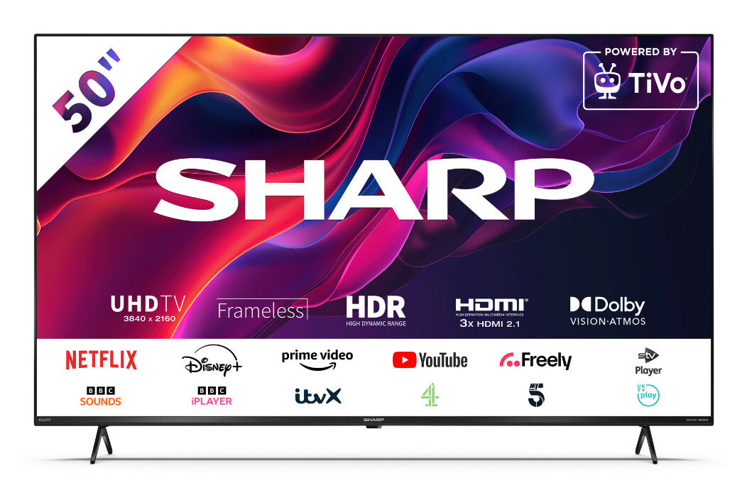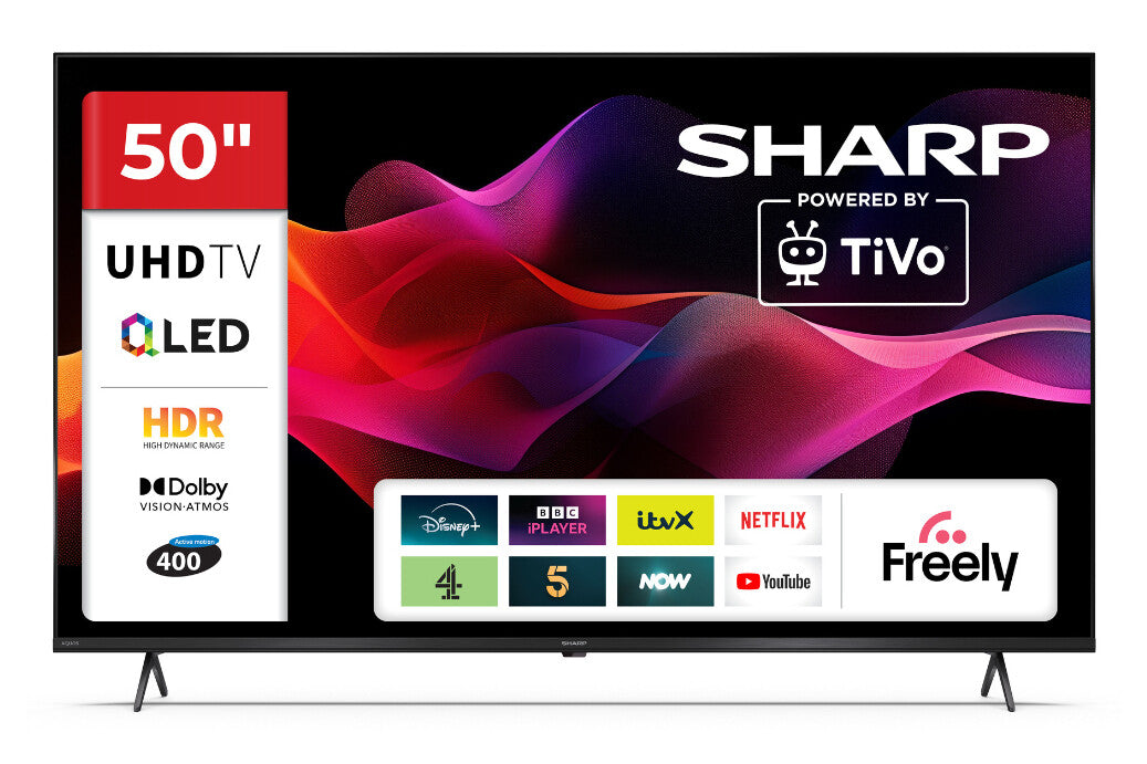 Experience stunning entertainment with this 50-inch SHARP 4K Ultra HD QLED Smart TV. Powered by TiVo, this television brings together all your favourite streaming services and live TV channels in one intuitive interface, with access to over 160 free channels through TiVo+.