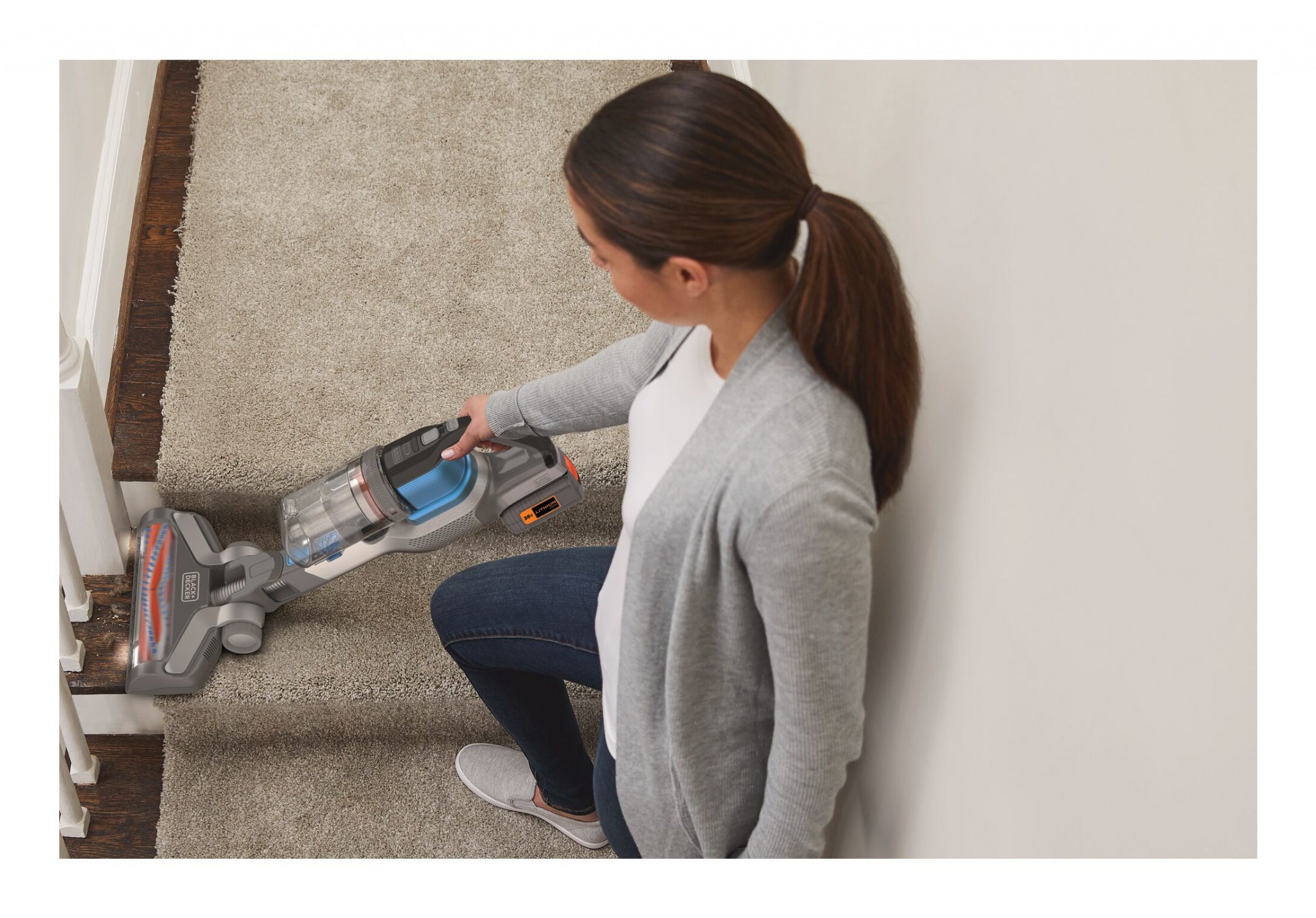With up to 78 minutes runtime on a single charge the BLACK+DECKER 36V POWERSERIES™ Extreme stick vac is engineered to help get jobs done quickly, easily and efficiently. This 4-in-1 stick vac has a powered anti-tangle beater bar that gives you a deep and powerful clean with less than 5% hair wrap and up to 80% more pick up on carpet*, leaving your home spotless.The three-speed settings allow you to vary your speed to suit the job at hand, use the high speed setting for a maximum deep clean, perfect for carpet. The transparent easy empty bowl allows you to pop the dirt out in one easy move keeping your hands clean of dust and debris. Part of the BLACK+DECKER 36V battery system. *compared to the BLACK+DECKER 18V MULTIPOWER vacuum cleaner