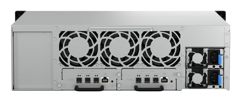 The base NAS requires QES 2.1.1 (or later) and either Mini-SAS HD (SAS 12Gb/s SFF-8644), Mini-SAS (SAS 6Gb/s SFF-8088) ports or a PCIe-based SAS expansion card.