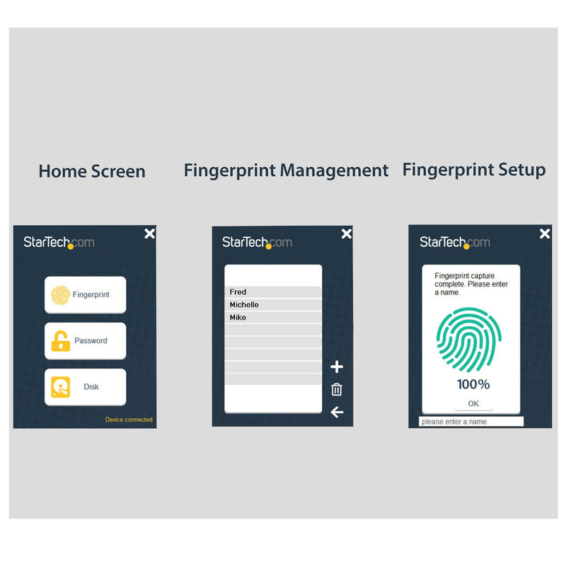 With the encrypted hard drive enclosure, you can limit data access to pre-authorized individuals, by storing up to eight fingerprints for fingerprint access. There is also one master password making it easy to configure, manage and change fingerprint profiles.