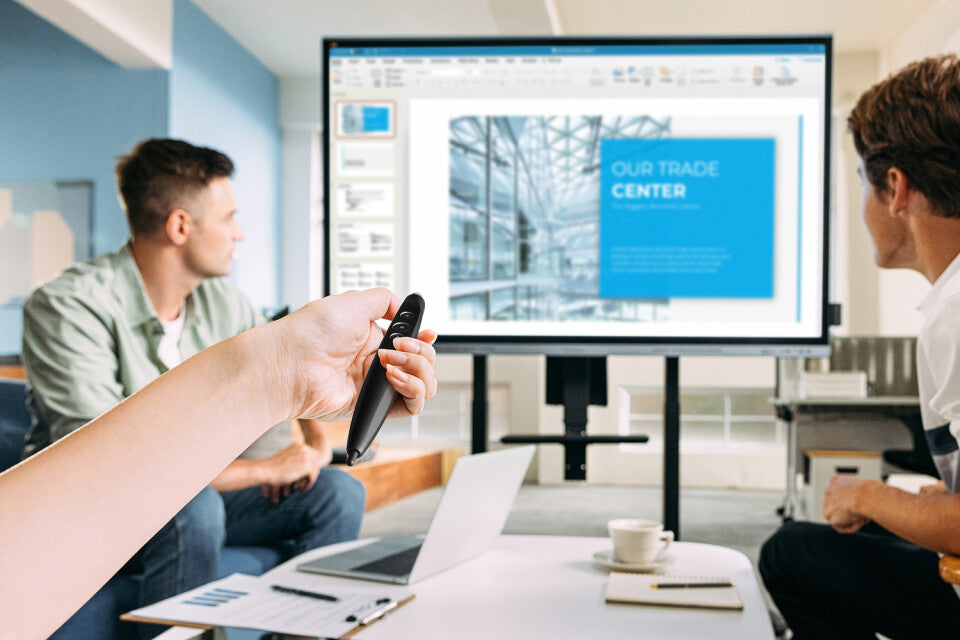 The AirPen boasts a curved shape that accommodates both left- and right-handed presenters, delivering a comfortable writing position for all. Its conveniently placed control buttons, right under the fingertips, ensure seamless navigation through slides and content without interruptions.