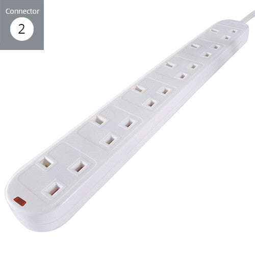 connektgear 5m 6 Way Surge Protected Power Extension Block - UK Plug to 6 x UK Sockets - White