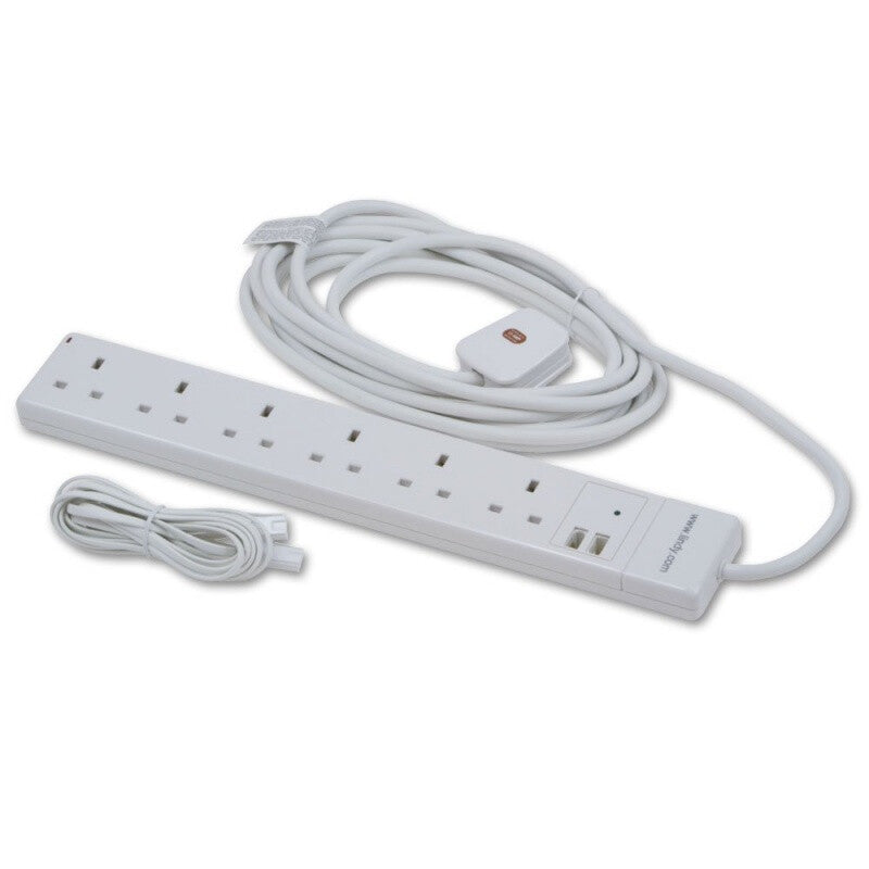 - Provides 6 mains sockets and an in-line surge protection for fax/modem via 2 x standard BT sockets (1 x incoming and 1 x outgoing)