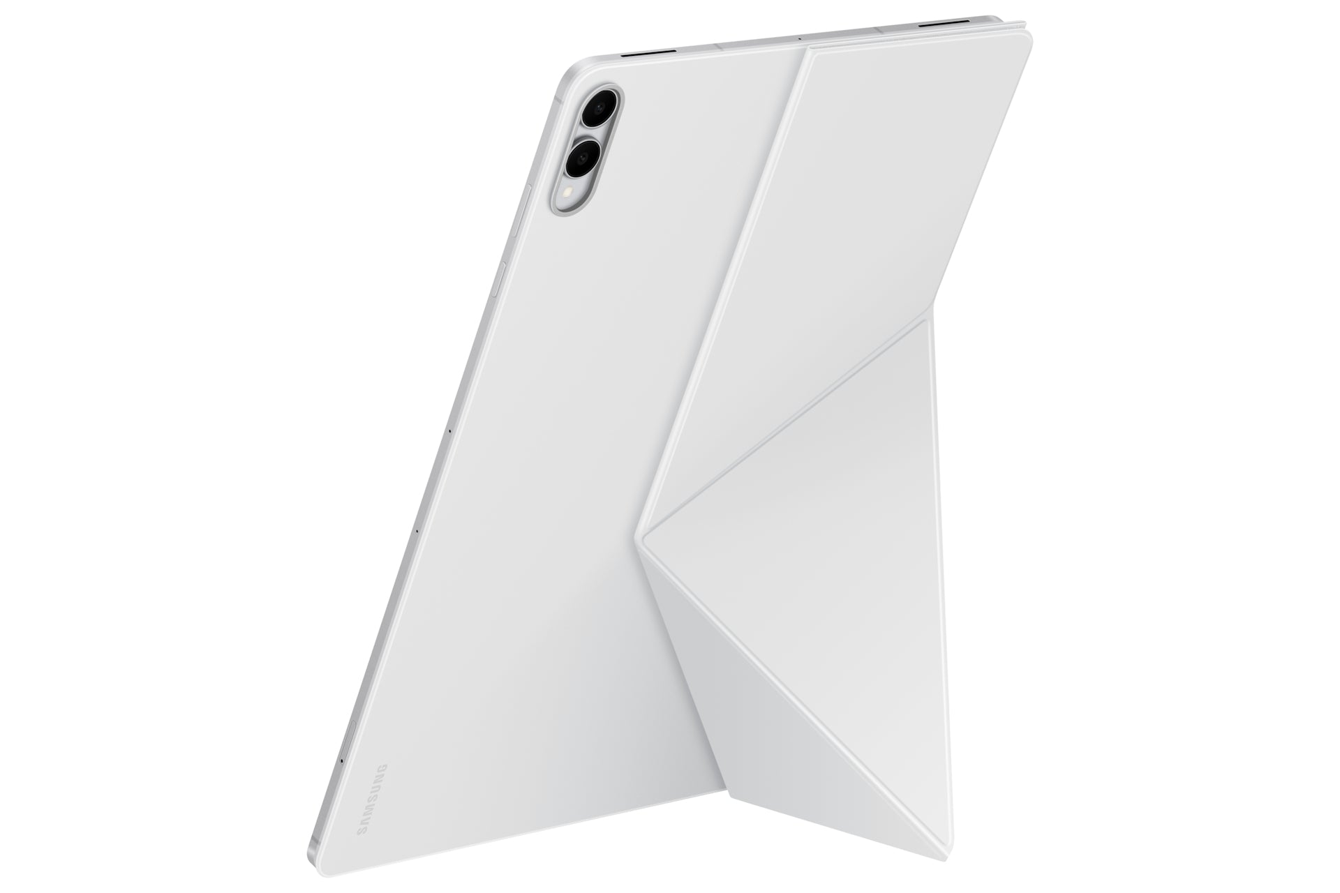 Stand your Galaxy Tab upright in both portrait and landscape mode with Book Cover. The front flap folds and supports the tablet from behind, creating a stable base that keeps your screen steady at the angle you choose.
