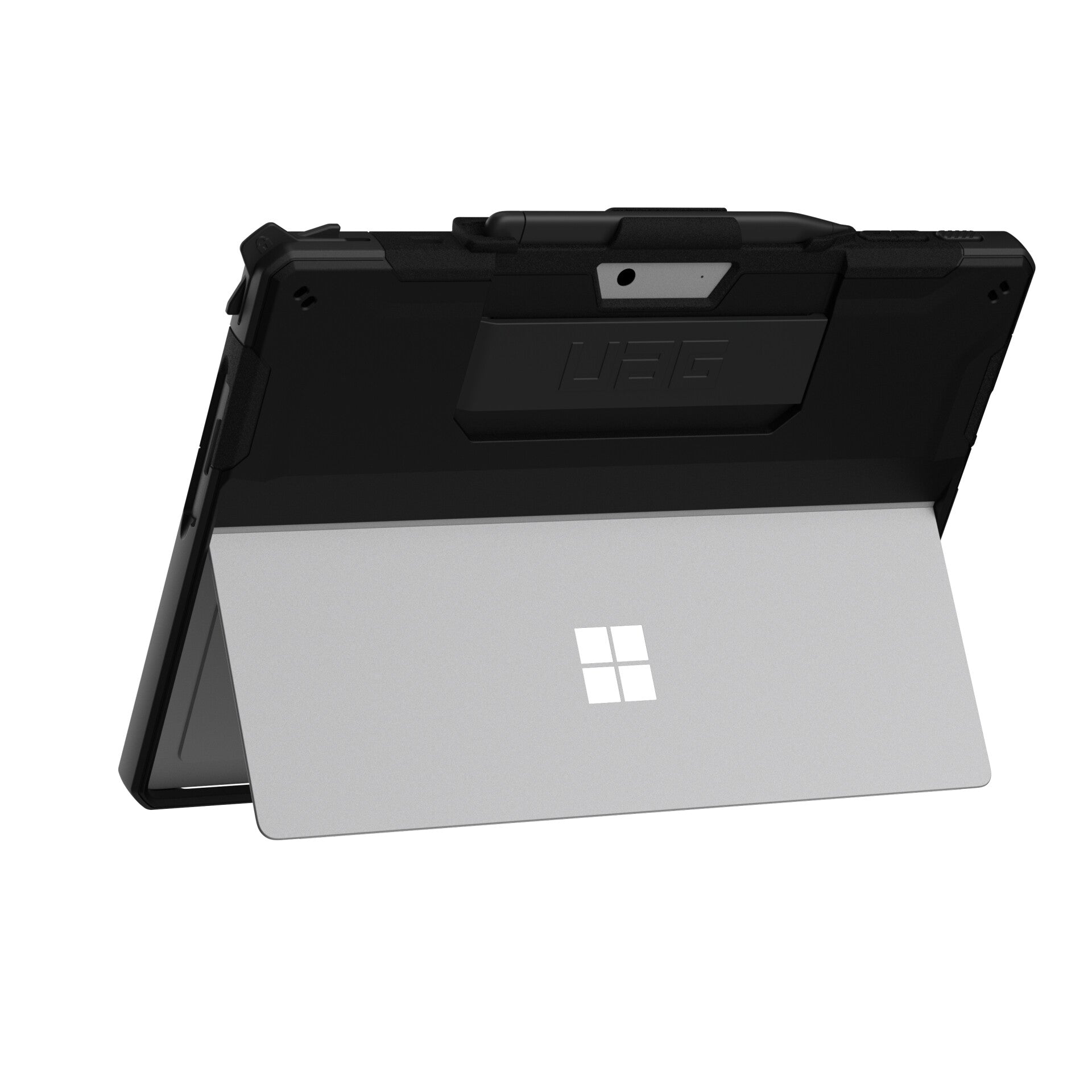 Our Scout Series is inspired by those forever seeking the road less traveled. This case is built to last and protect your device from everyday accidents. Real-world military drop tested this case is made with a durable armor shell and impact resistant bumpers crucial for drop protection. Its non-slip tactile grip and comfortable hand strap provide premium handling and make it easier to work on the go. Surface Pen holder so you can keep your Pen secure and close by. Multiple anchor points for an adjustable shoulder strap (shoulder strap not included). The thoughtful open Scout design also allows for full use of the Surface Pro 9 kickstand. This case is also compatible with the Microsoft Surface Type Cover Keyboard, perfect for work or school.