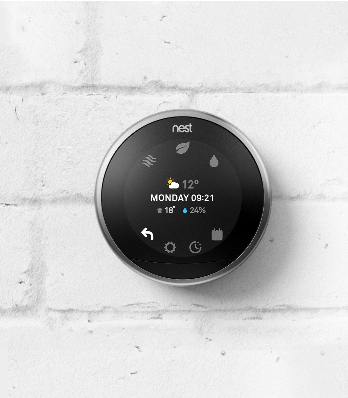 The Nest thermostat does. Since 2011, we estimate that it’s saved over 39 billion kWh of energy in millions of homes worldwide.² Because it learns from you. It gets to know the temperature that you like when you’re at home. And turns itself down when you’re away. It even learns how your home warms up or how draughty it is, so it only uses the energy it needs. That’s how the Nest thermostat saves energy.
