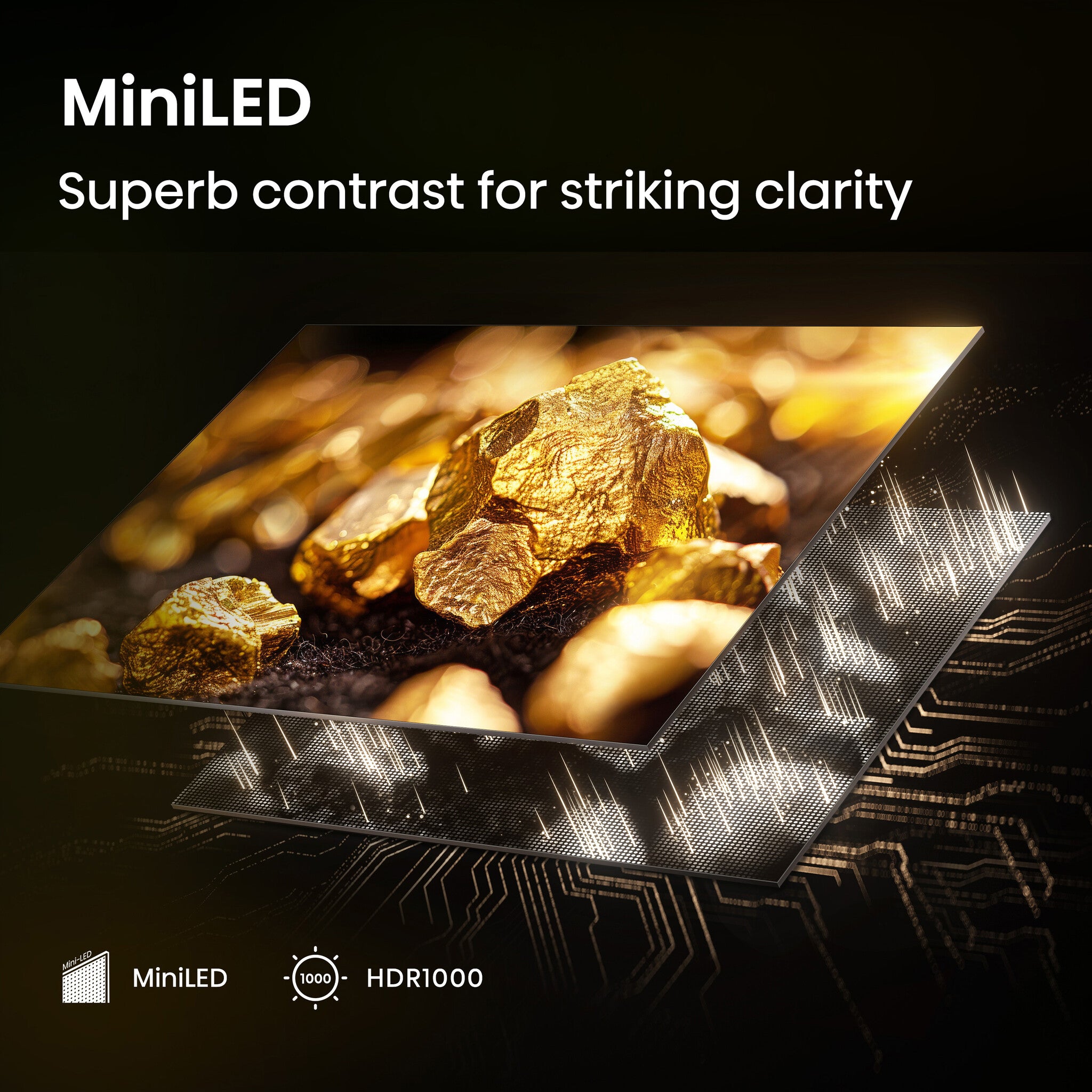 Combines thousands of tiny LEDs into hundreds of dimming zones, giving an incredible level of control in terms of brightness, contrast and colour, supported by 144Hz panel technology and improved Mini-LED HDR1000.