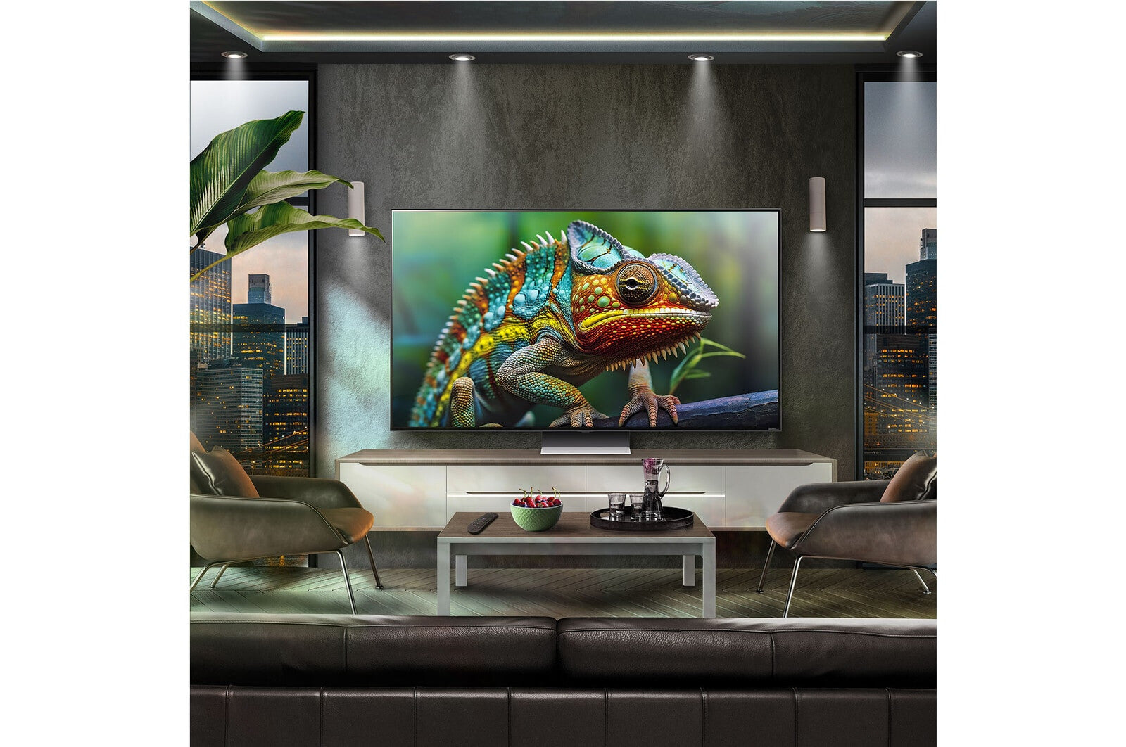 The premium finish and stylish stand will look great in any living space, and the super-slim profile will ensure an unobtrusive look should you choose to wall mount the TV.
