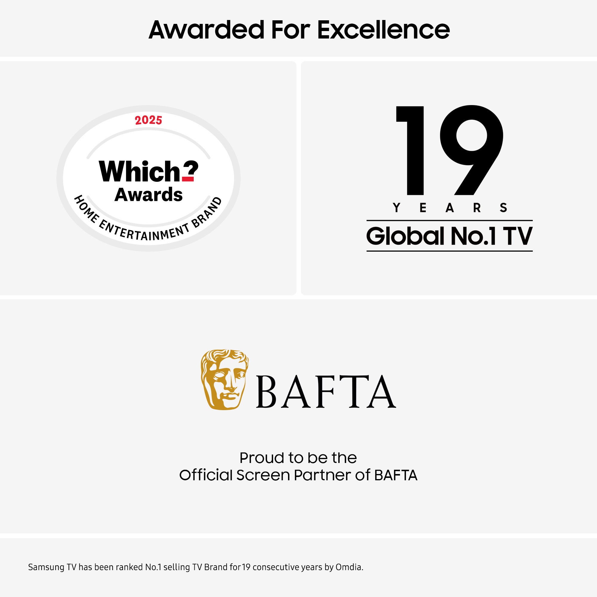 Control your TV with your favourite Voice Assistant - with Bixby and Alexa built-in to your TV. Ask them to change the volume, find that new series, bring up your holiday photos, or check on your connected devices in your smart home. The possibilities are endless – you just need to ask.