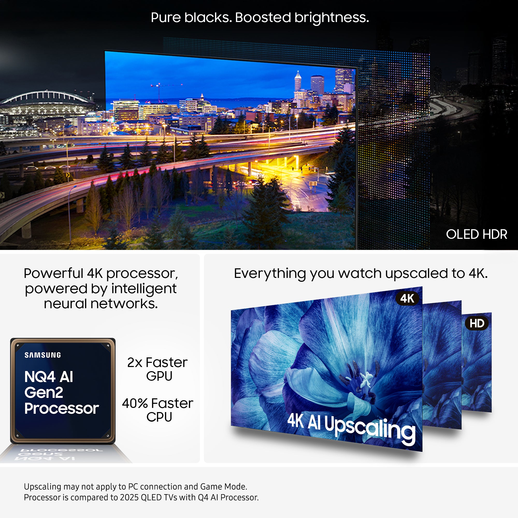 Experience real-world colours and cutting contrasts with Samsung OLED. OLED technology allows each pixel to be individually controlled - creating pure blacks, bright whites and epic contrast. Samsung OLED is Pantone validated, so that everything you watch comes to life in stunning realism.