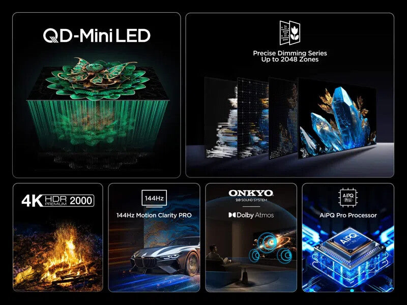 Precise Dimming series refers to Mini LED TV with all-domain halo control technology. The new generation of powerful light-emitting chip, super condensed Micro lens and Micro-OD make the light shape of individual zones more perfect, and its halo control ability is several times that of ordinary zones. Combined with the HVA panel with high native contrast ratio and the world's leading light and shadow control algorithm, Precise Dimming series shapes the real light and shadow so that the TV's comprehensive picture quality performance is dramatically improved compared to ordinary TVs, bringing an upscale image experience.