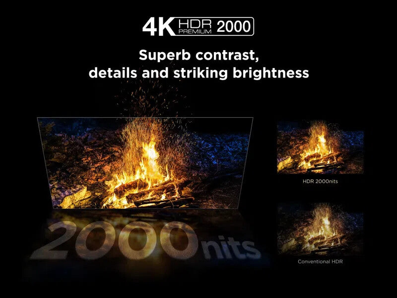 Thanks to its peak brightness of 2000nits, the C7K features an ultra-high contrast ratio of 20 million:1 and a higher dynamic range. With its precise dimming capability, the C7K displays both deep darkness and bright, vivid details.