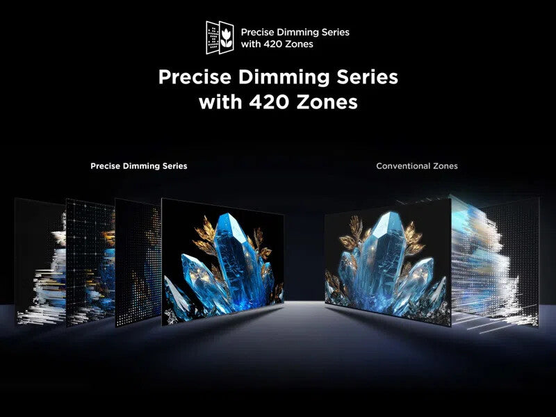Precise Dimming series refers to Mini LED TV with all-domain halo control technology. The new generation of powerful light-emitting chip, condensed Micro lens and Micro-OD make the light shape of individual zones more perfect, and its halo control ability is several times that of ordinary zones. Combined with the HVA panel with high native contrast ratio and the world's leading light and shadow control algorithm, Precise Dimming series shapes the real light and shadow so that the TV's comprehensive picture quality performance is dramatically improved compared to ordinary TVs, bringing an upscale image experience.