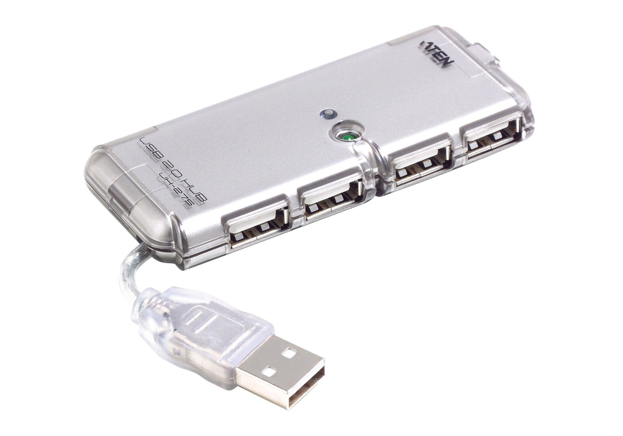 UH275 is a hub with 4 built-in USB2.0 ports. It has LEDs to indicate the connections status, and its handy and slim design allows users to carry it in pockets.