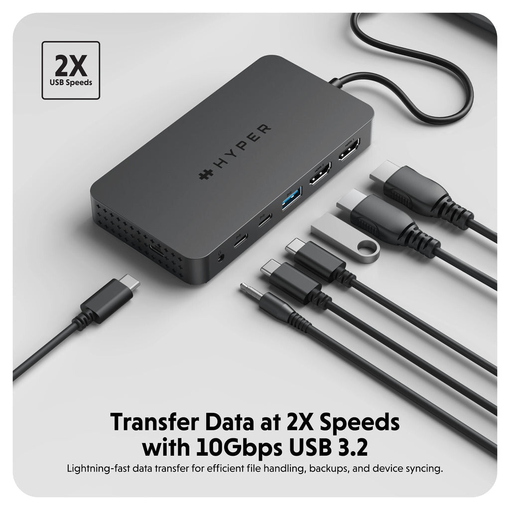 Introducing the HyperDrive® Next Dual 4K HDMI 7 Port USB-C Hub - the ultimate connectivity solution for creators, editors, photographers, and more. Get dual 4K monitor support for the M1, M2 & M3 MacBook, PC, and Chromebook with 7 ultra-fast ports and lightning-fast data transfers, you can unleash your creative potential anywhere. Experience 2X faster file transfers using the 10Gbps USB ports, charge your device with a 100W PD power pass-through port, and make a sustainable choice with EcoSmart™.