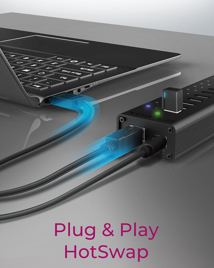 - PLUG & PLAY: Due to the independent device setup of the operating system, no driver is necessary. The hub only needs to be connected to the computer and peripheral devices can be connected