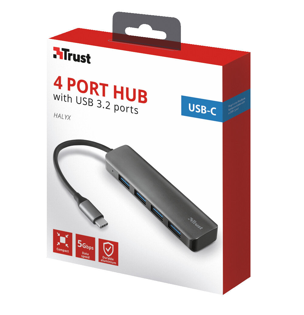 Trust 23328 interface hub USB 3.2 Gen 1 (3.1 Gen 1) Type-A 5000 Mbit/s Grey