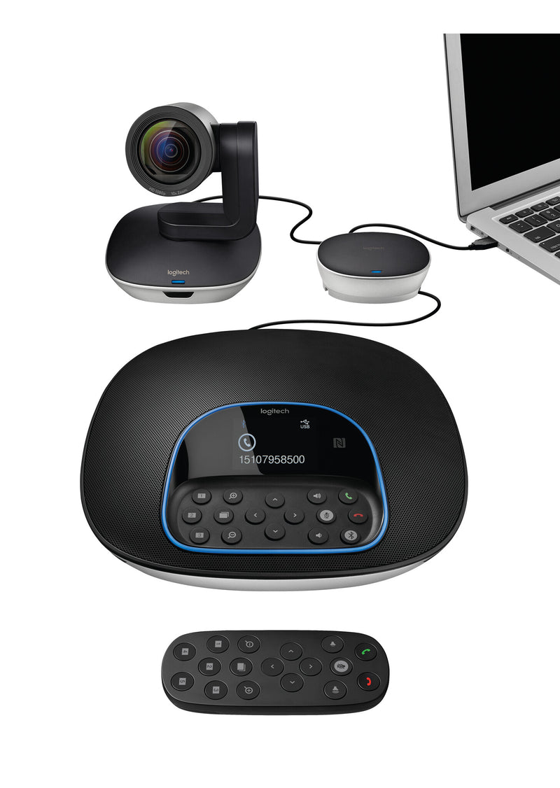 Logitech GROUP – the amazingly affordable videoconferencing system for mid- to large-sized meeting rooms. Optimised for groups of up to 20 people, experience outstanding videoconferencing with crystal-clear audio and HD video of such quality that everyone in the room can be seen and heard. USB plug-and-play connectivity makes Logitech GROUP a breeze to deploy and use. Employees simply connect a laptop to conduct life-like meetings with their choice of video conferencing software. The sleekly designed full-duplex speakerphone delivers sound that’s crisp, clear and heard by everyone in the meeting within a 6-metre (20-foot) diameter around the base unit.