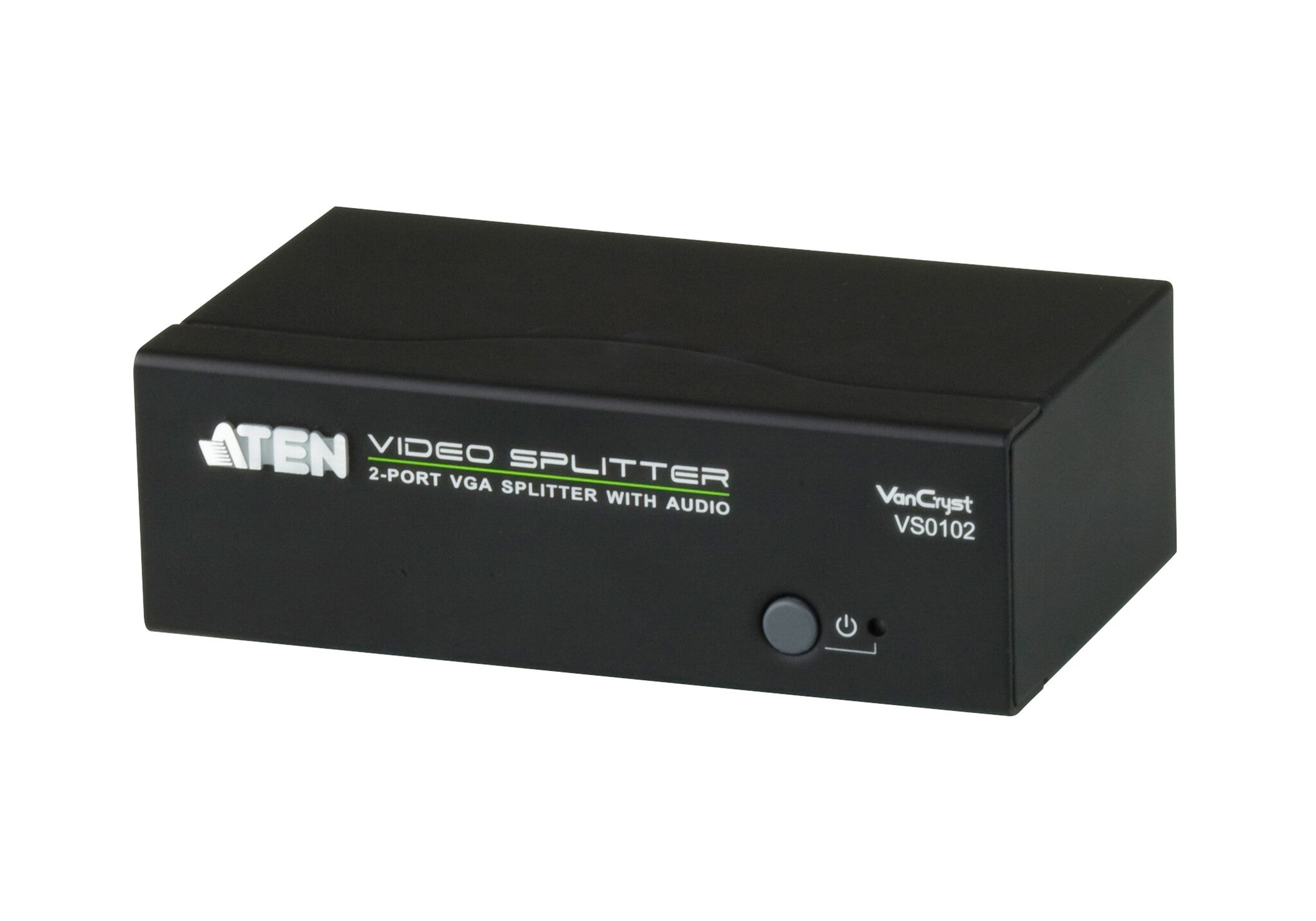 The ATEN VS0102 2-Port VGA Splitter with Audio is VGA splitter that allow a single VGA video and audio signal to be distributed to two output displays with independent stereo control. The splitter support up to 450MHz video bandwidth, which provides optimum video quality, supported by resolutions up to 1920x1440.
