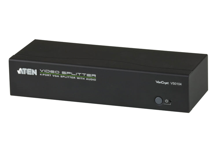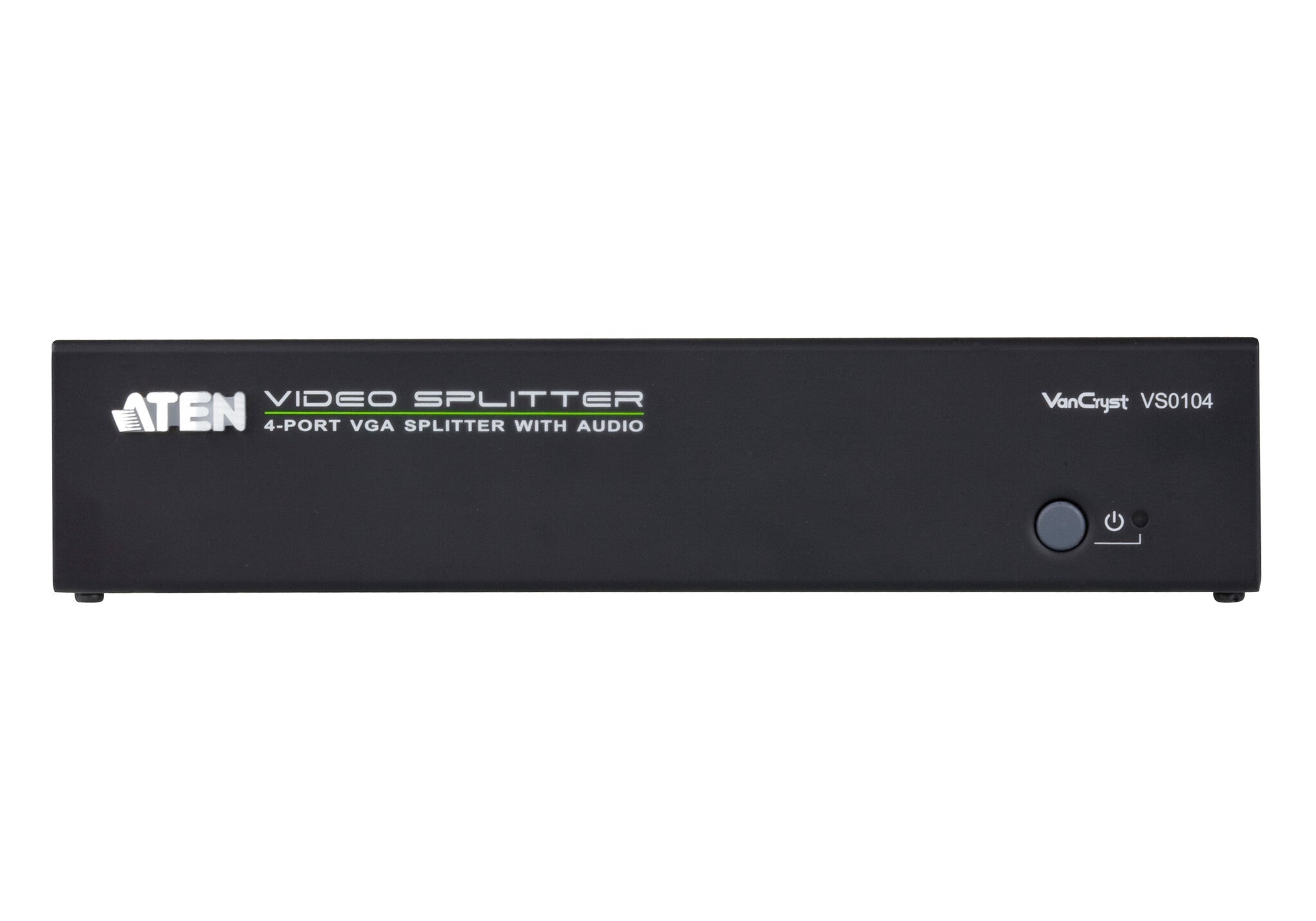 The ATEN VS0104 4-Port VGA Splitter with Audio is VGA splitter that allow a single VGA video and audio signal to be distributed to four output displays with independent stereo control. The splitter support up to 450MHz video bandwidth, which provides optimum video quality, supported by resolutions up to 1920x1440.