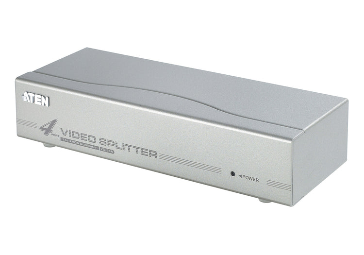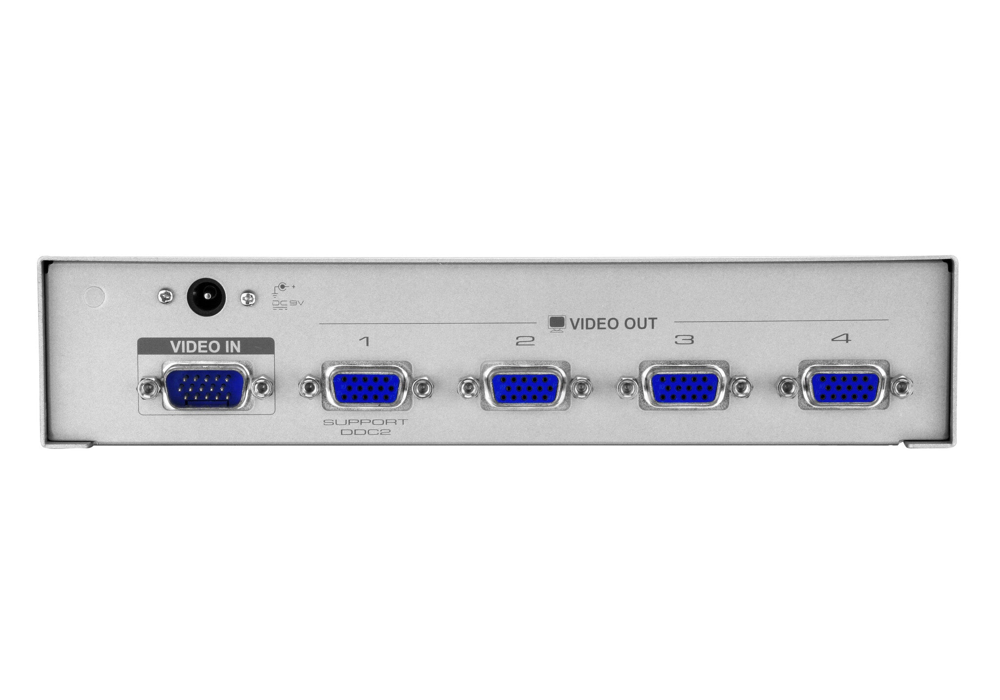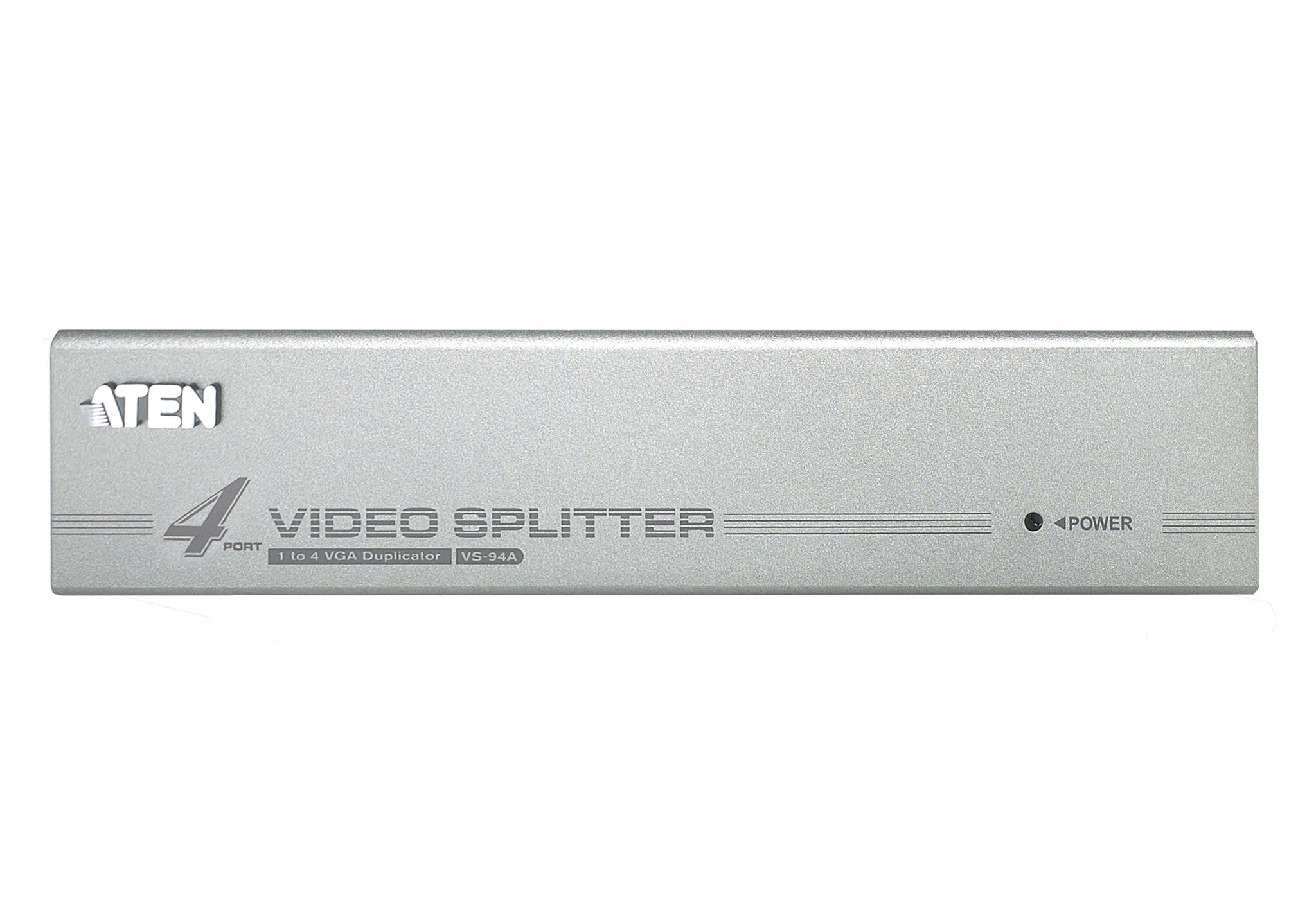 The VS94A is a video splitter that not only duplicates the video signal from any VGA, XGA, SVGA, UXGA, or multisync monitor to four outputs, but also boosts the video signal over a distance of up to 30 meters. Cascadable to support up to 64 displays, and offering bandwidth up to 350 MHz, the VS94A is ideal for broadcasting and enhancing video information to the public, monitoring your work environments from safe locations, or offering superior video for company or classroom training.