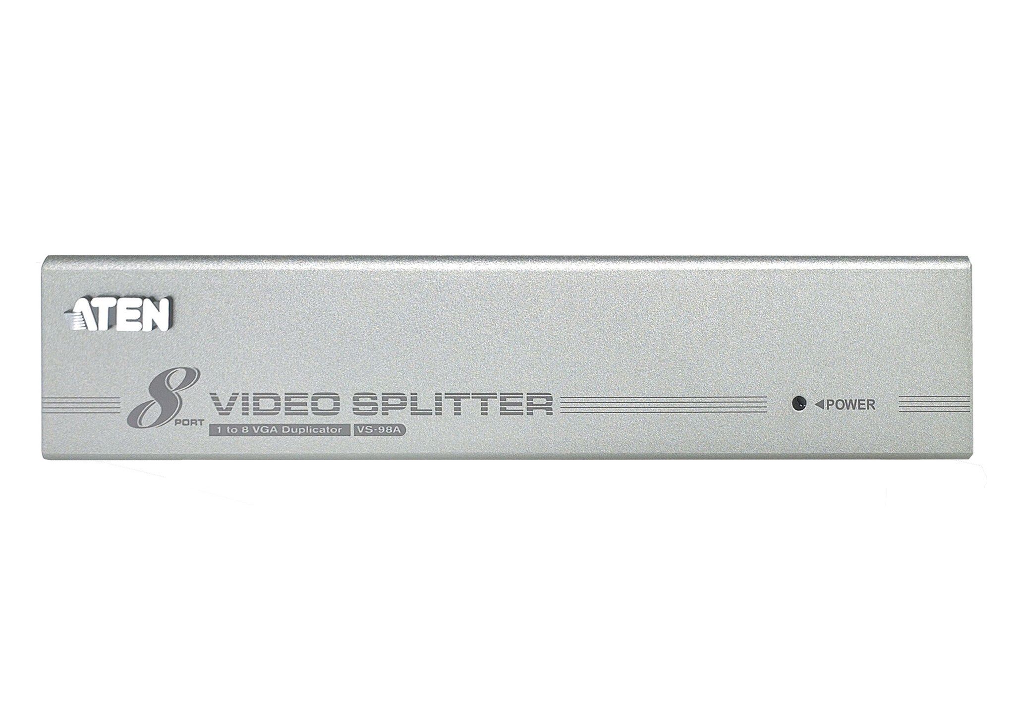 The VS98A is a video splitter that not only duplicates the video signal from any VGA, XGA, SVGA, UXGA, or multisync monitor to eight outputs, but also boosts the video signal over a distance of up to 30 meters. Cascadable to support up to 512 displays, and offering bandwidth up to 300 MHz, the VS98A is ideal for broadcasting and enhancing video information to the public, monitoring your work environments from safe locations, or offering superior video for company or classroom training.