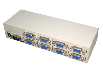 The KVS-538 is a video splitter designed for desktop use, supplied in a durable, compact, metal housing. The KVS-538 is independent of software and other than cables and monitors, no additional hardware is required. The splitters duplicate and boost the input signal to 8, VGA, SVGA or multi-sync monitors, with a signal rate of 300 Mhz.
