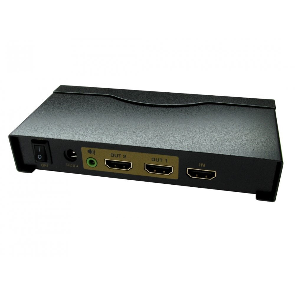 The splitters have 3.5mm stereo output for local speakers etc to avoid multiple audio outputs from TVs or Displays. Both versions have metal housing making them very sturdy. Rubber feet provide an anti-slip functionality.