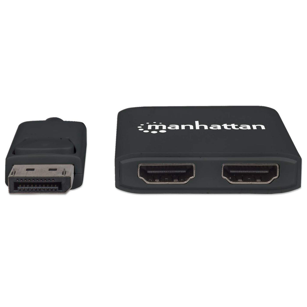 The Manhattan DisplayPort to Dual HDMI - MST Hub streams a 4K DisplayPort (DP) signal from a single UHD source to up to two UHD HDMI displays.