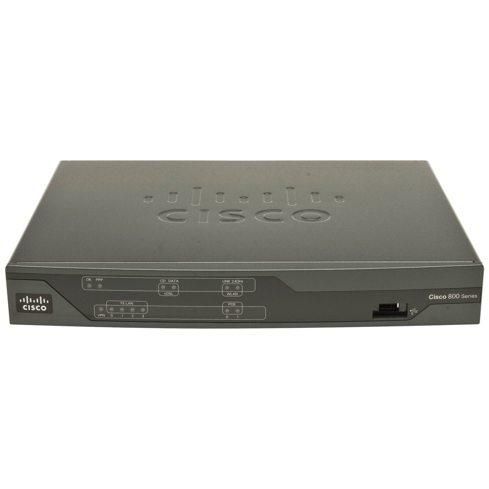 Cisco 880 Series Integrated Services Routers are fixed-configuration routers that provide collaborative business solutions for secure voice and data communication to small businesses and enterprise teleworkers. They offer concurrent broadband services over third-generation (3G), Metro Ethernet, and multiple DSL technologies to provide business continuity. Wireless 802.11n and 3G offer LAN and WAN mobility. The routers provide the performance required for concurrent services, including firewall, intrusion prevention, content filtering, and encryption for VPNs; optional 802.11g/n for mobility; and quality-of-service (QoS) features for optimizing voice and video applications. In addition, the web-based Cisco Configuration Professional configuration tool simplifies setup and deployment. Centralized management capabilities give network managers visibility and control of the network configurations at the remote site.