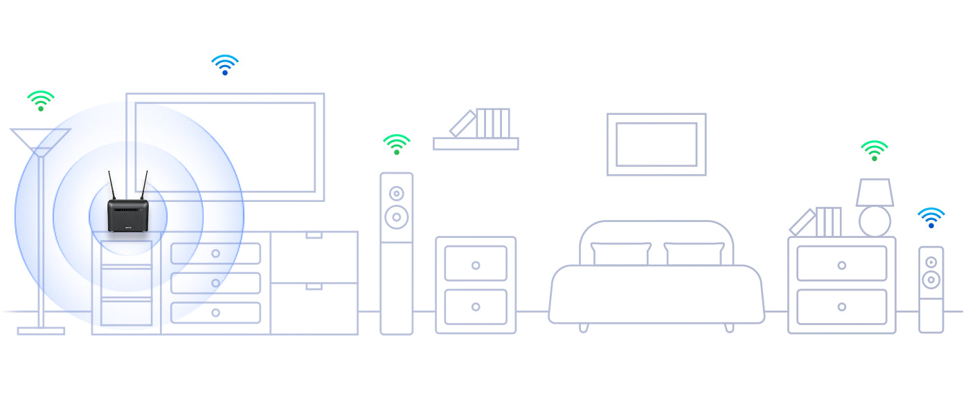 866 Mbps (5 GHz) + 300 Mbps (2.4 GHz) for video streaming, web browsing, social media, and downloading on multiple Wi-Fi devices