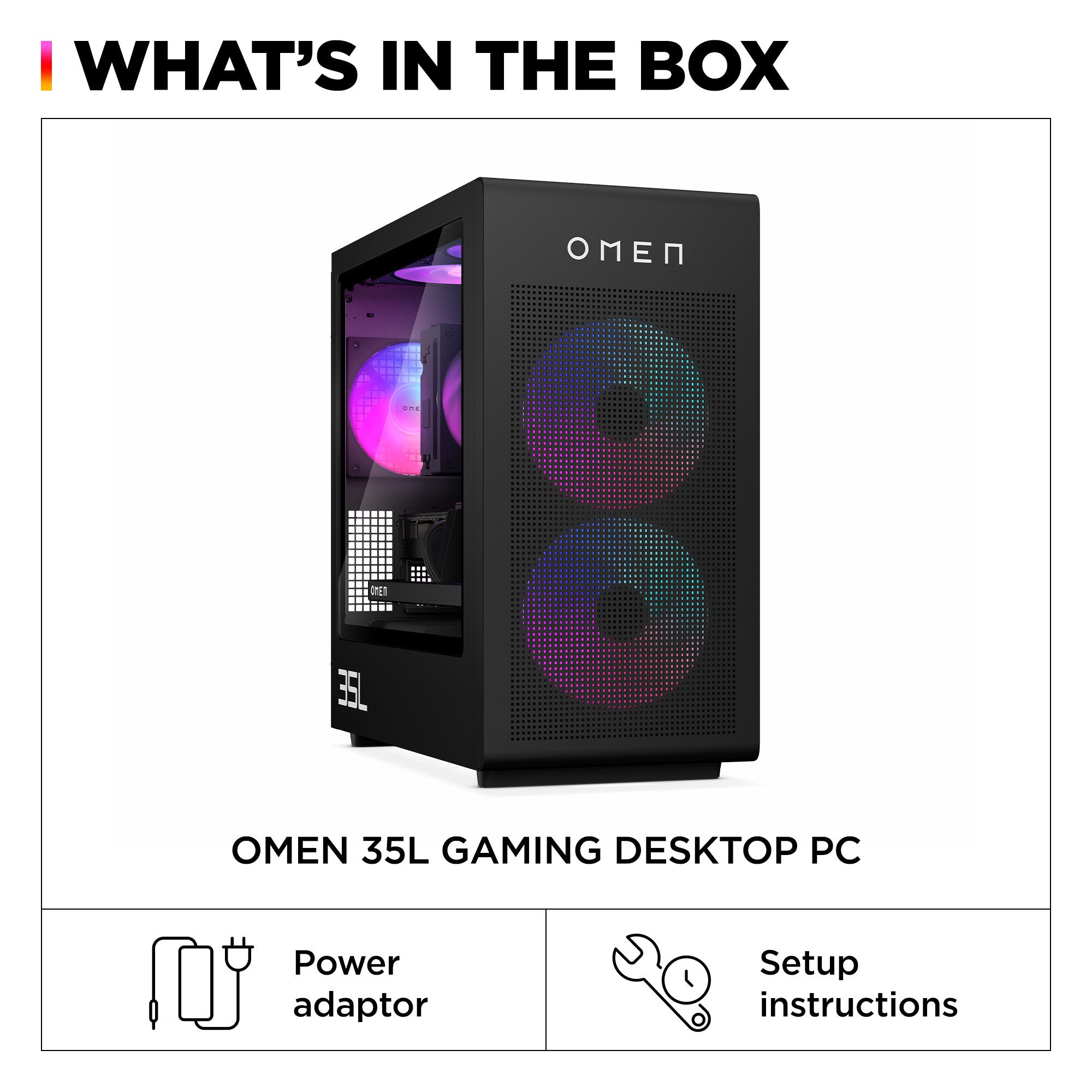 The OMEN 35L Gaming Desktop PC unlocks your performance potential. It features the latest AMD Ryzen™ Processor[1] and advanced graphics, with OMEN branded components optimized for peak thermal capabilities and power. Designed for easy tool-less upgradability and personalization to suit your gaming needs.