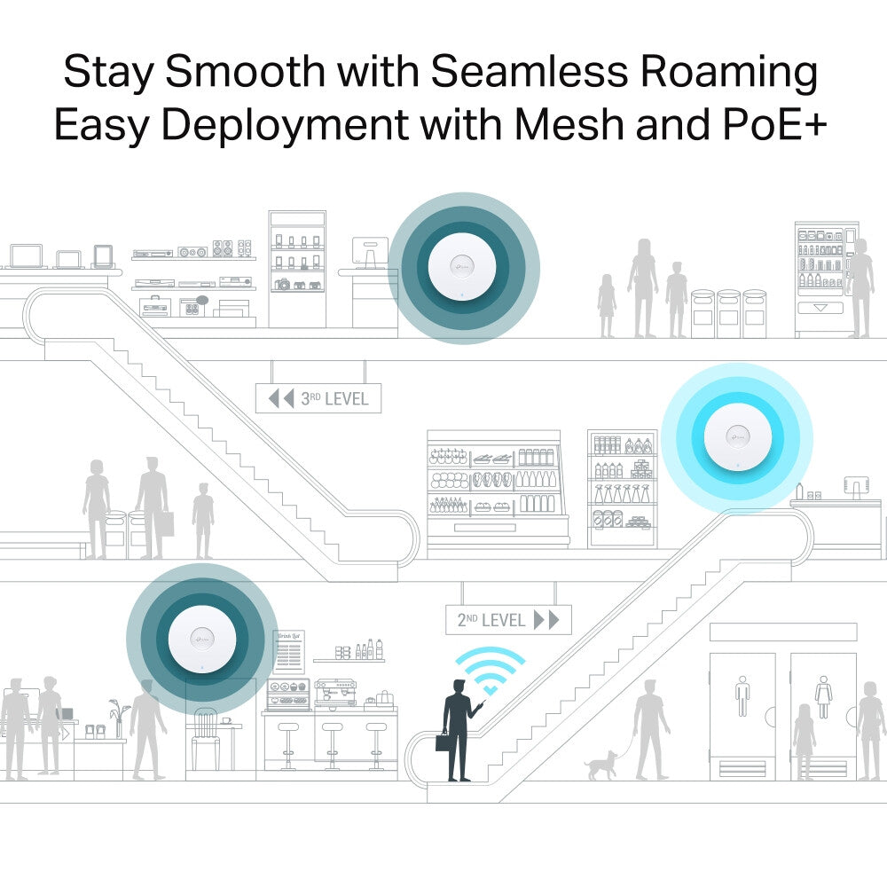- Omada Mesh: Enables wireless connectivity between access points for extended range and flexible deployment.§