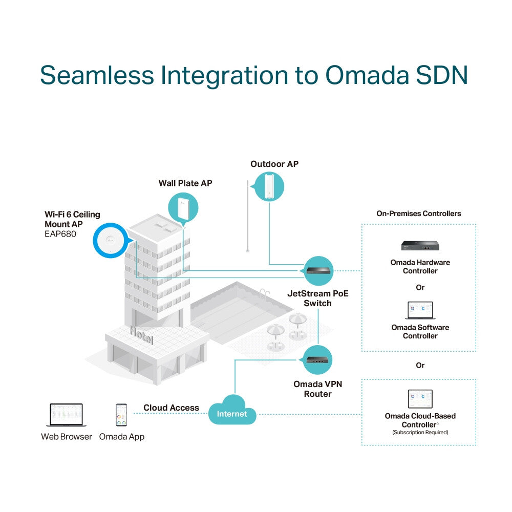 - Centralized Cloud Management: Omada SDN integration manages the whole network locally or from the cloud via web UI or Omada app