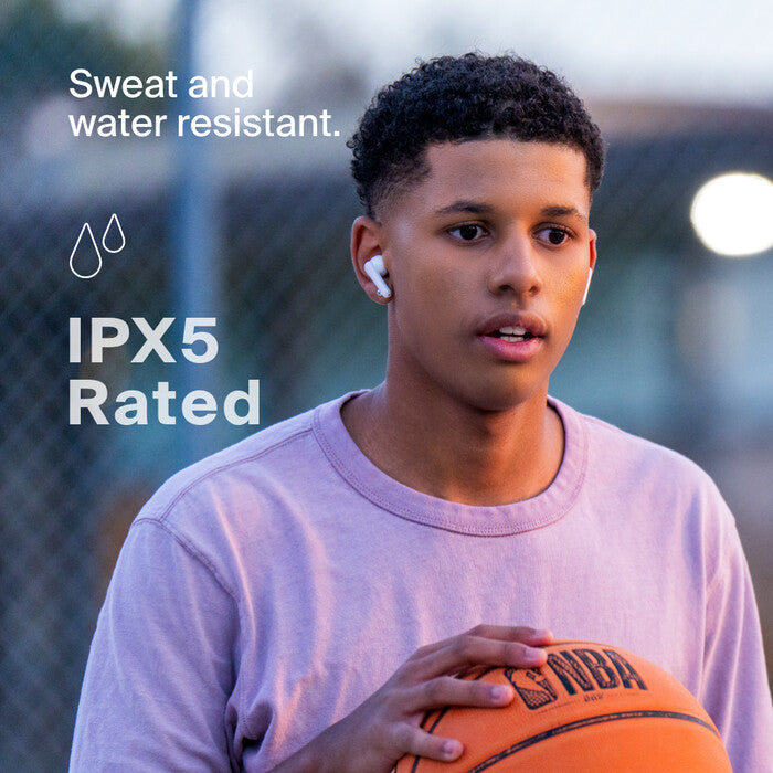 - IPX5 sweat and water resistance†† keeps earbuds safe as kids splash through puddles, dash through light rain and play carefree