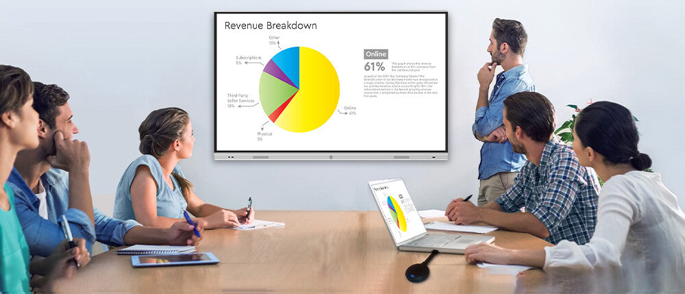 PushShare enables smooth collaboration during meetings by allowing participants to wirelessly mirror their devices to the Interactive Touch Display for more productive meetings. Once the dongle is connected to your device of choice, a simple push of the button will start wirelessly sharing the device’s display to your Interactive Touch Display instantly. This simple system suits user behaviour so anyone can use it without the need for any installation or training – maximising the return on your investment.