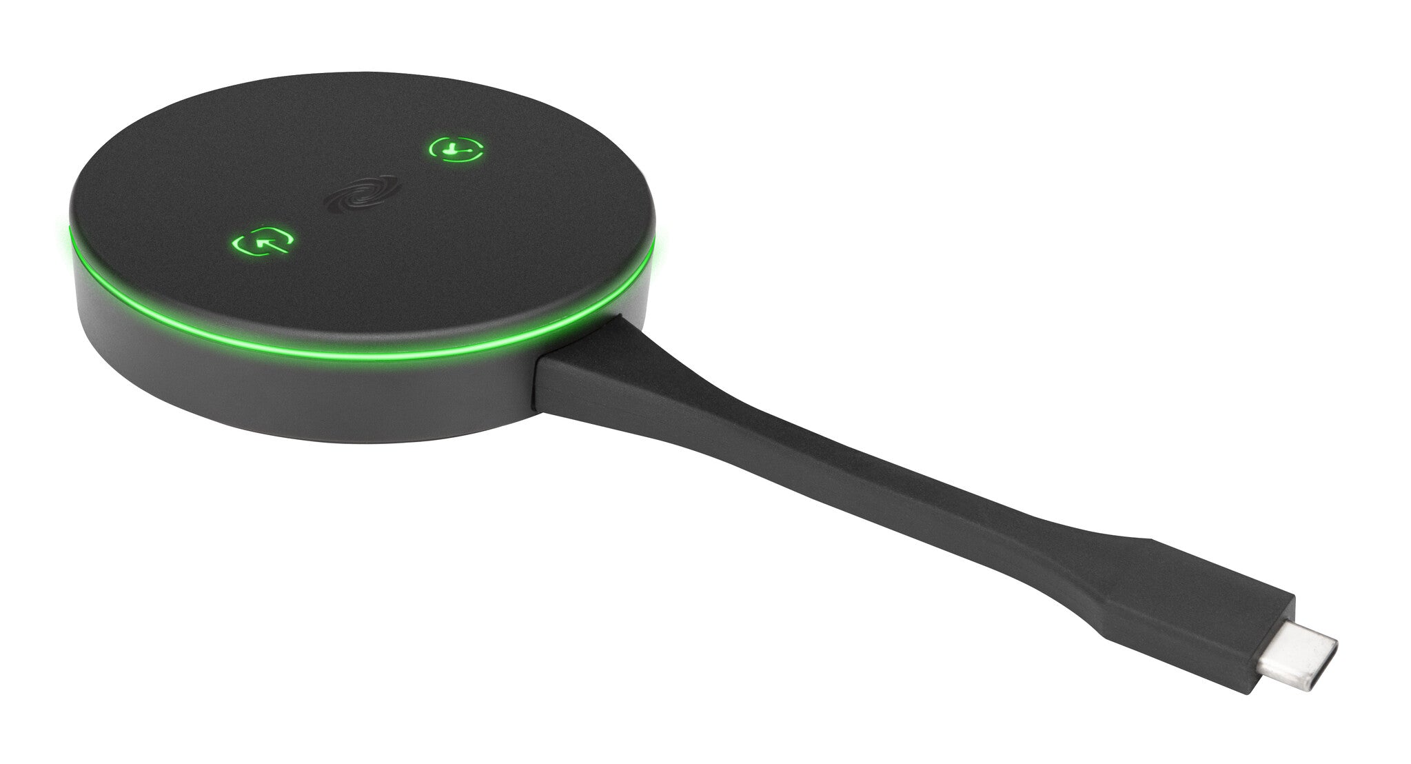 As an alternative to software based AirMedia wireless presentation, the AM3-111-I KIT includes an AirMedia Connect Adaptor (AM-TX3-100-I). Simply plug the adaptor into a personal device's USB‑C® port to connect to the AirMedia Receiver. The adaptor communicates wirelessly with the system using built‑in Wi‑Fi to display content up to a 4K30 resolution. Use the LED‑backlit capacitive touch buttons to start, stop, or pause the presentation at any time. Connect up to eight adaptors (one included) to a single receiver to maximize the space's collaboration abilities.