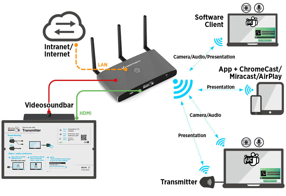 The Kindermann KLICK & SHOW K-FX - The easy Wireless Conferencing & Collaboration solution.