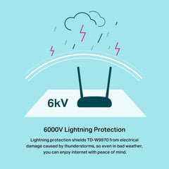 Lightning protection shields TD-W9970 from electrical damage caused by thunderstorms, so even in bad weather, you can enjoy internet with peace of mind.