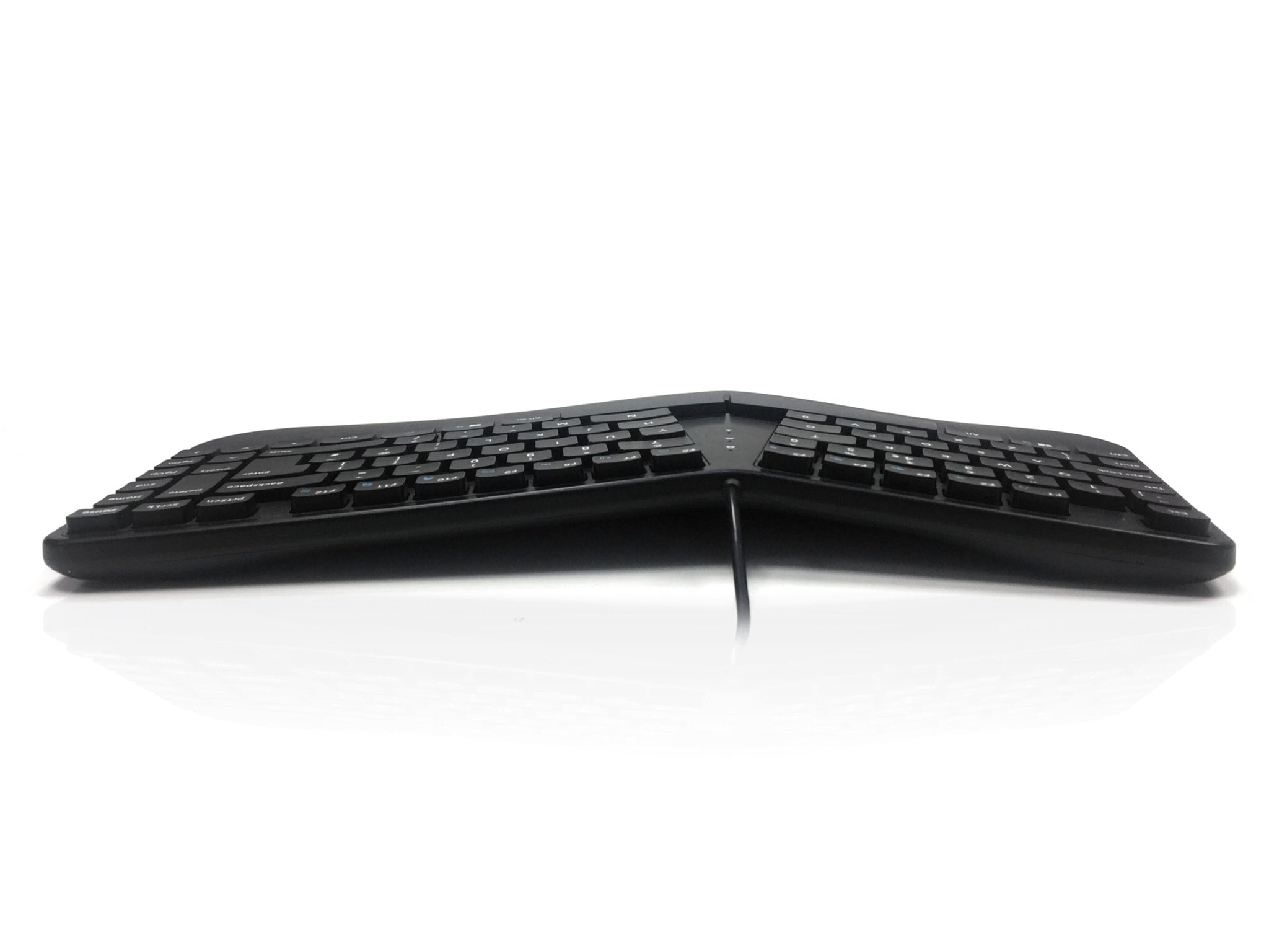 - Split key keyboard layout, offering a natural arc typing position for wrists to aid with RSI and Carpel Tunnel Syndrome