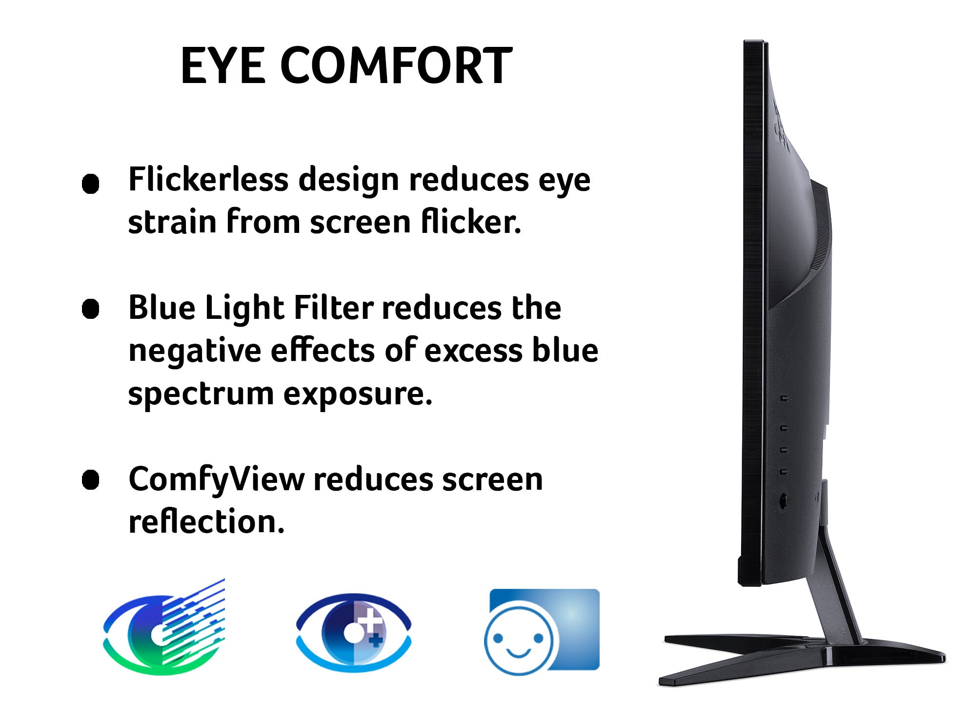 The KG282K also features Acer’s VisionCare suite of technologies, including BlueLightShield and Flickerless, which help to reduce eye strain and make your viewing experience more comfortable.
