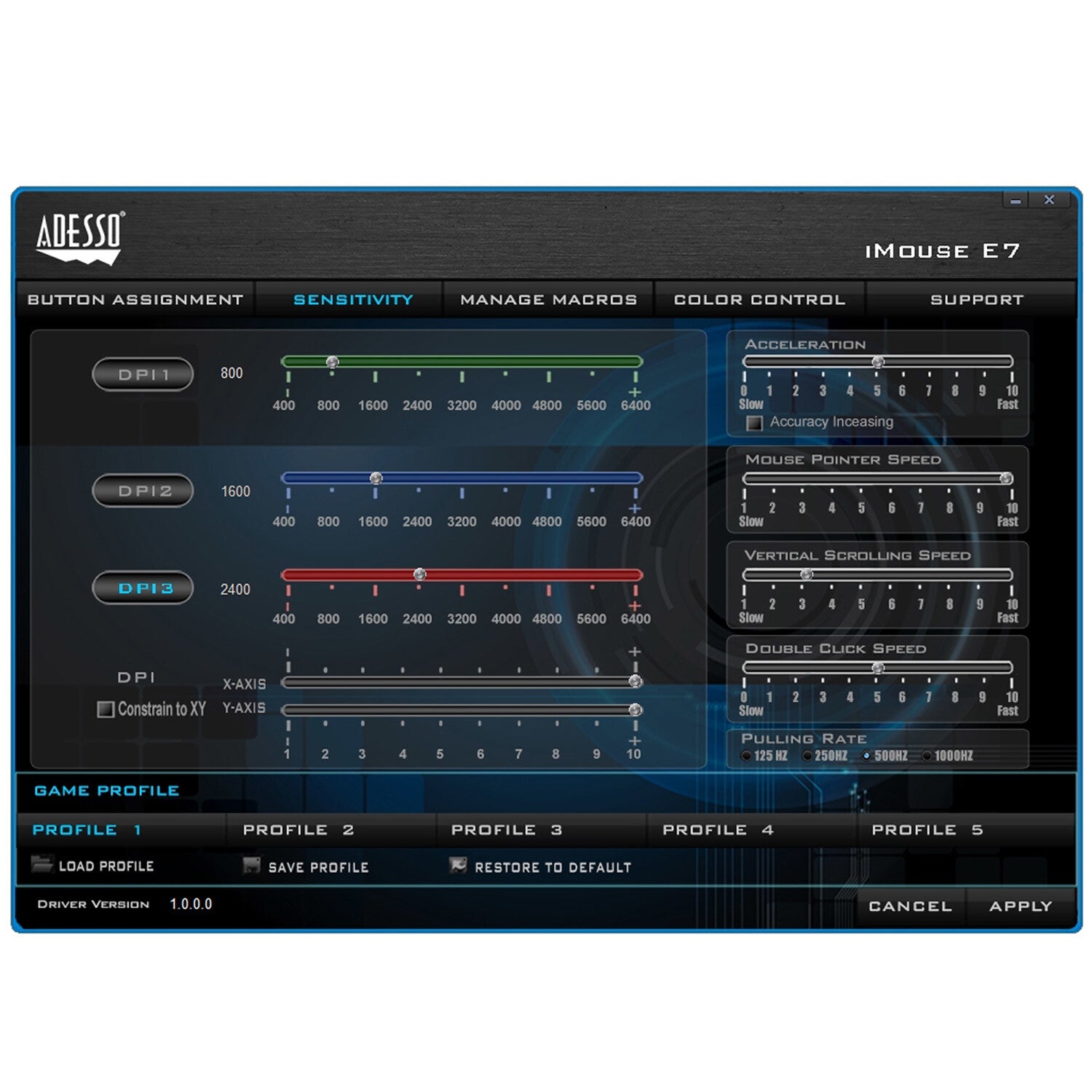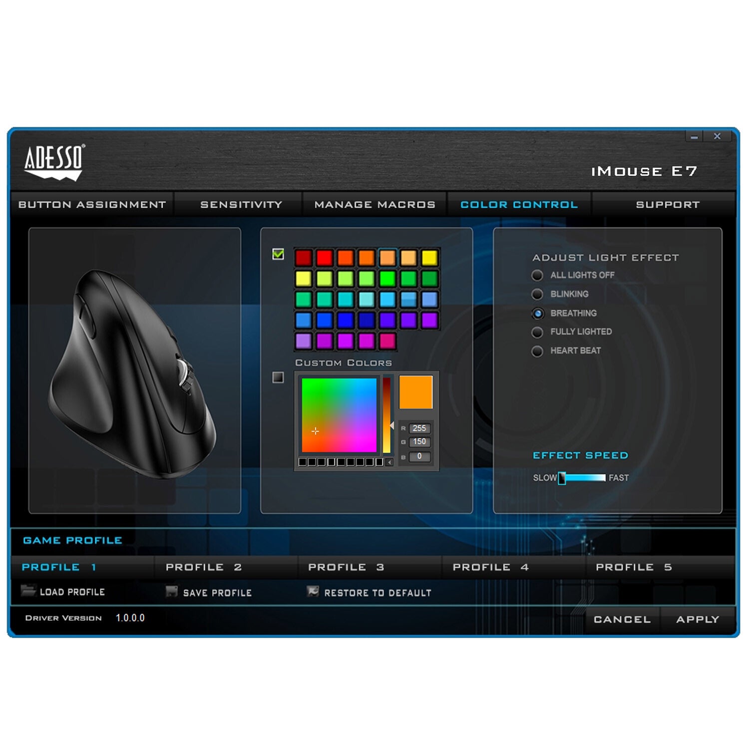 - Programmable Driver - Adjust and customize your iMouse E7 to your liking to enhance your gaming experience with the included Programmable Driver. Easy to install, and navigate through, within the driver menu, adjust anything from mouse colors, to blinking speed, to assigning commands (macros) , and reprogramming buttons with a few simple steps.