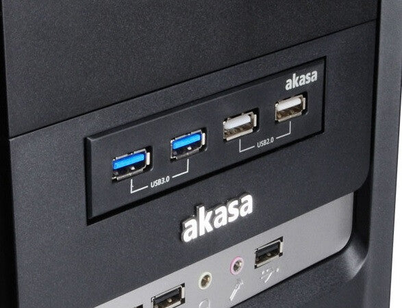 The akasa connect panel locates in PC chassis 3.5" drive bay and gathers all USB data connections in one easy accessible place.