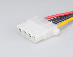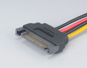 Additional connector for 4pin peripheries, converts 15pin SATA PSU power to 4pin PSU Molex connector, designed for ITX and ATX power supplies without sufficient number of 4pin Molex power connectors, length: 15cm.