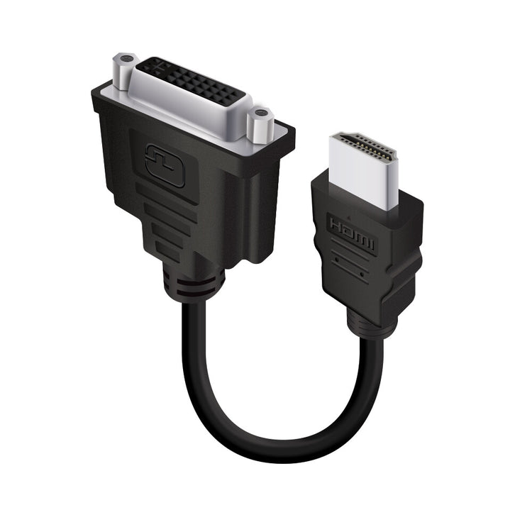 The 15cm HDMI (M) to DVI-D (F) Adapter - Male to Female is used to convert a HDMI signal to DVI signal. The adapter is bi - directional and also works to convert a DVI-D signal to a HDMI signal. The unique cable design provides flexibility during installation as the connector can move freely in all directions and different angles.
