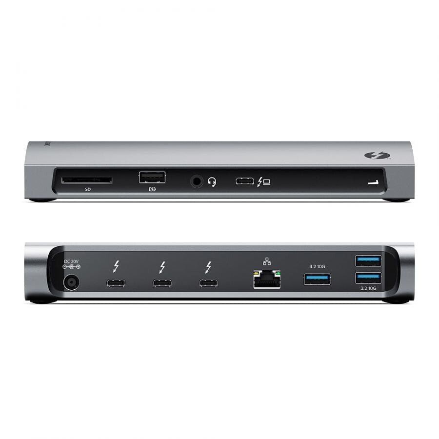 • 3 x USB-C Thunderbolt 4/USB 4.0 (40 Gbps/3A), 3 x USB-A 3.1 Gen 2 (10Gbps), 1 x USB-A 2.0 (480Mbps) BC1.2 (1.5A), 1 x 3.5mm Combo Jack, , 1 x Gigabit Ethernet Port,1 x SD Card Reader (SD 4.0)
