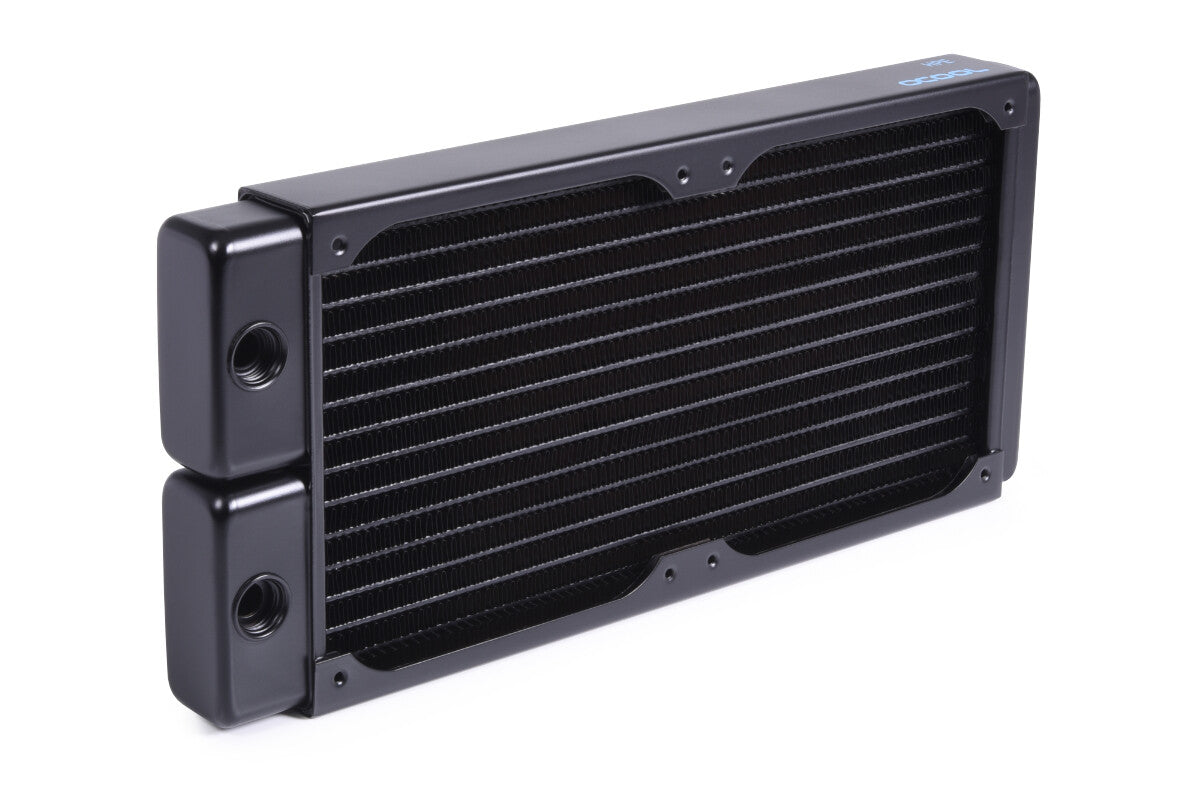 For more than a decade, Alphacool has dominated the market with the NexXxoS Full Copper radiator series. Our extensive portfolio of radiator variants is unique in the world. Just like our manufacturing process, which allows us to produce all water-carrying parts and the cooling fins out of pure copper. As a result, the NexXxoS series offers the highest thermal conductivity of any radiator on the market. Thanks to their exceptional performance, the radiators can easily dissipate even extremely high waste heat and have become essential in many areas of the cooling industry.