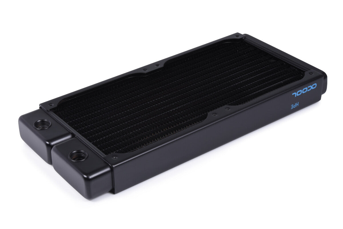 The NexXxos Full Copper HPE Radiator uses the same materials as previous NexXxos models, but takes it a step further technically. Due to the condensed internal structure, the number of water channels and copper fins could be increased. Thus, a larger volume of water is in direct contact with the cooling fins and the heat transfer is enormously improved. The higher number of fin rows and their shortening also makes much more efficient use of the cooling surface. Comparison tests* with the conventional NexXxos radiator have shown that a performance increase of 4.5K is possible when using the HPE radiator. At higher ambient temperatures and higher fan speeds, the performance gap with the normal NexXxoS radiators even increases progressively, reaching a possible performance increase of up to 6K.
